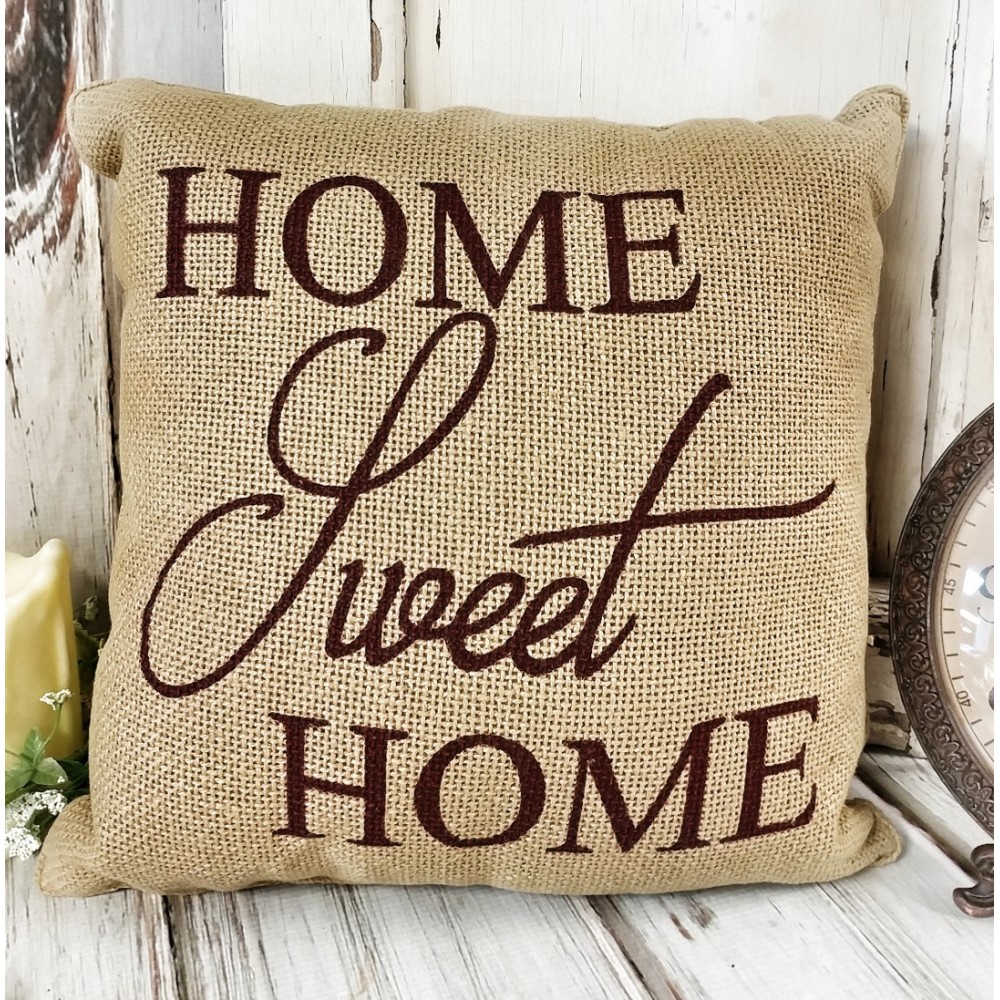 Burgandy Sweet Home Burlap Home Decor Accent Pillow Vintage