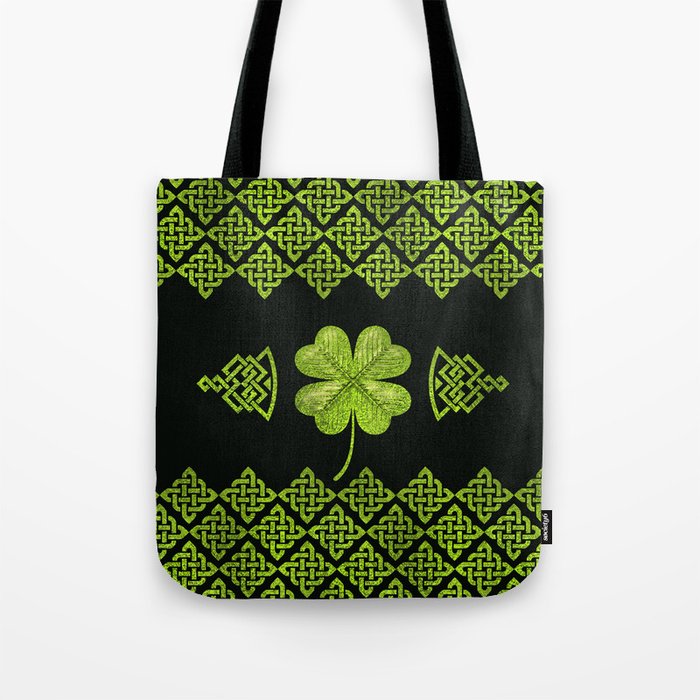 Irish Shamrock Four Leaf Clover With Celtic Decor Tote Bag By