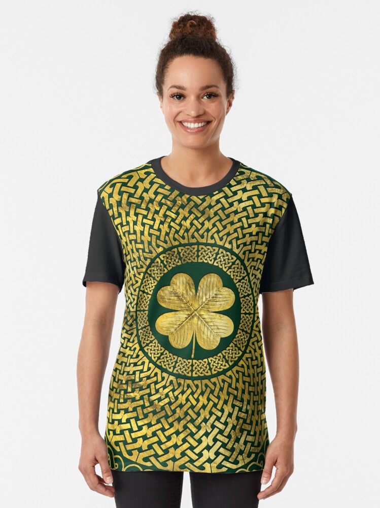 Irish Four Leaf Clover With Celtic Decor T Shirt By K9printart