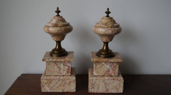 Set Antique Red Marble Decor Bookend Mantel Clock Chimney Etsy