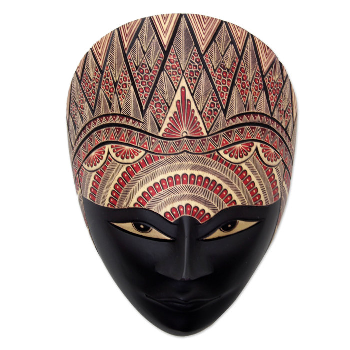 Novica Hely And Endang Javanese Wood Batik Mask With Peacock Crown