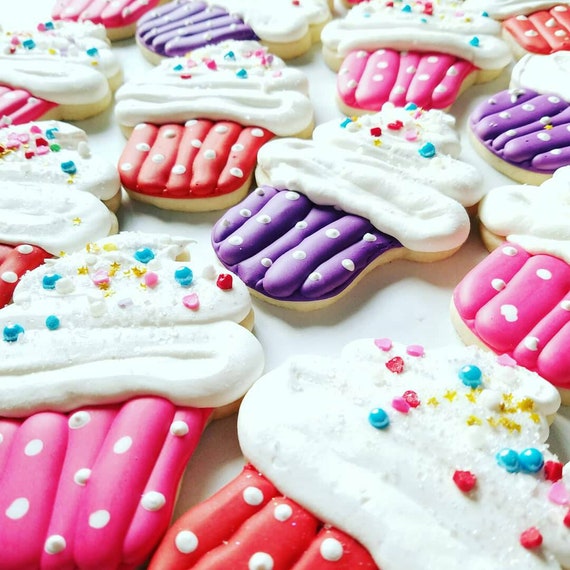 Sparkly Cupcake Custom Decorated Cookies Sold By The Dozen Etsy