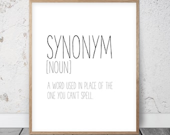Synonym Definition Funny Office Wall Art Office Decor Synonym