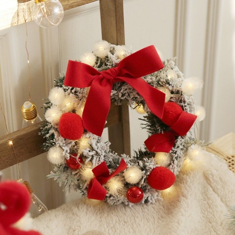 2019 Christmas Wreath With Led String Light Bowknot And Plush