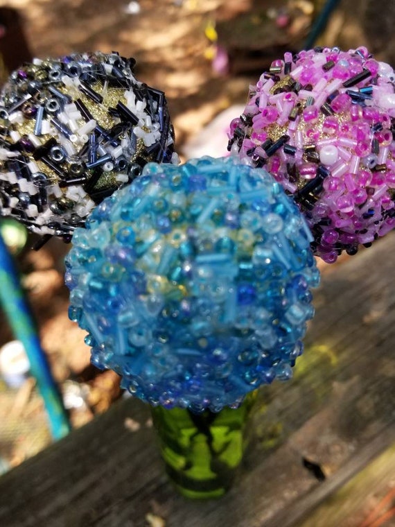 Small Decorative Garden Stakes With Glass Beads Garden Etsy