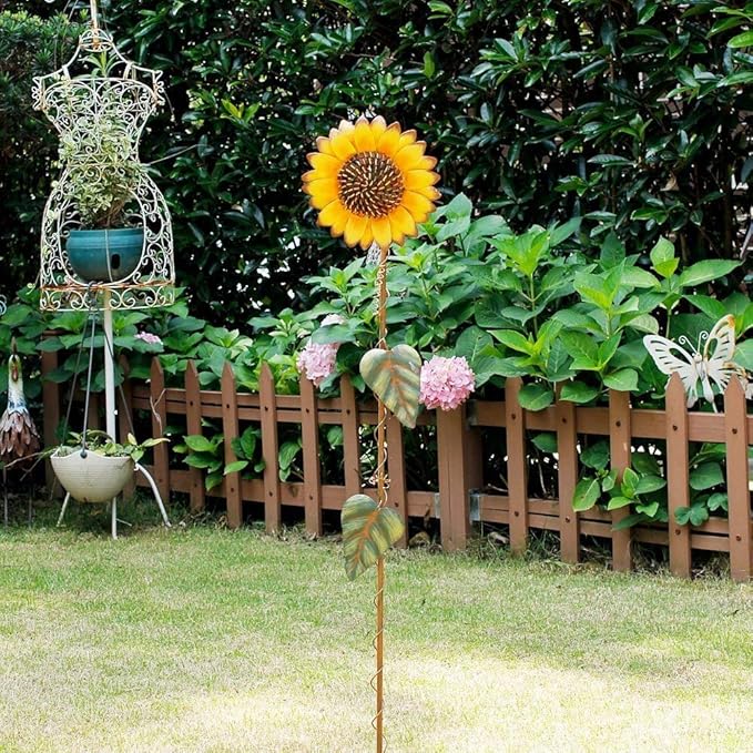 Patio Lawn Garden Rainbow Handcrafts Vintage Metal Sunflower