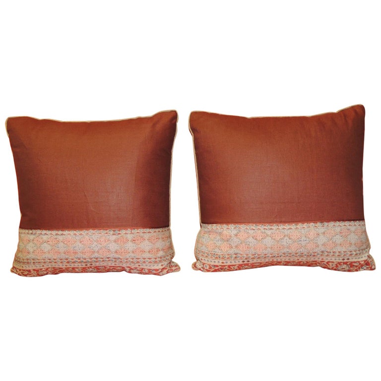 Pair Of Vintage Kalamkari Indian Square Decorative Pillows For
