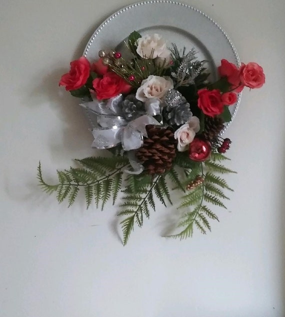 Decorative Wall Plate Red And Silver Wall Hanging Home Decor Etsy