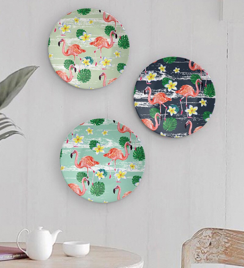 Buy 6pcs Decorative Hanging Plates Set Creative Flamingo Pattern