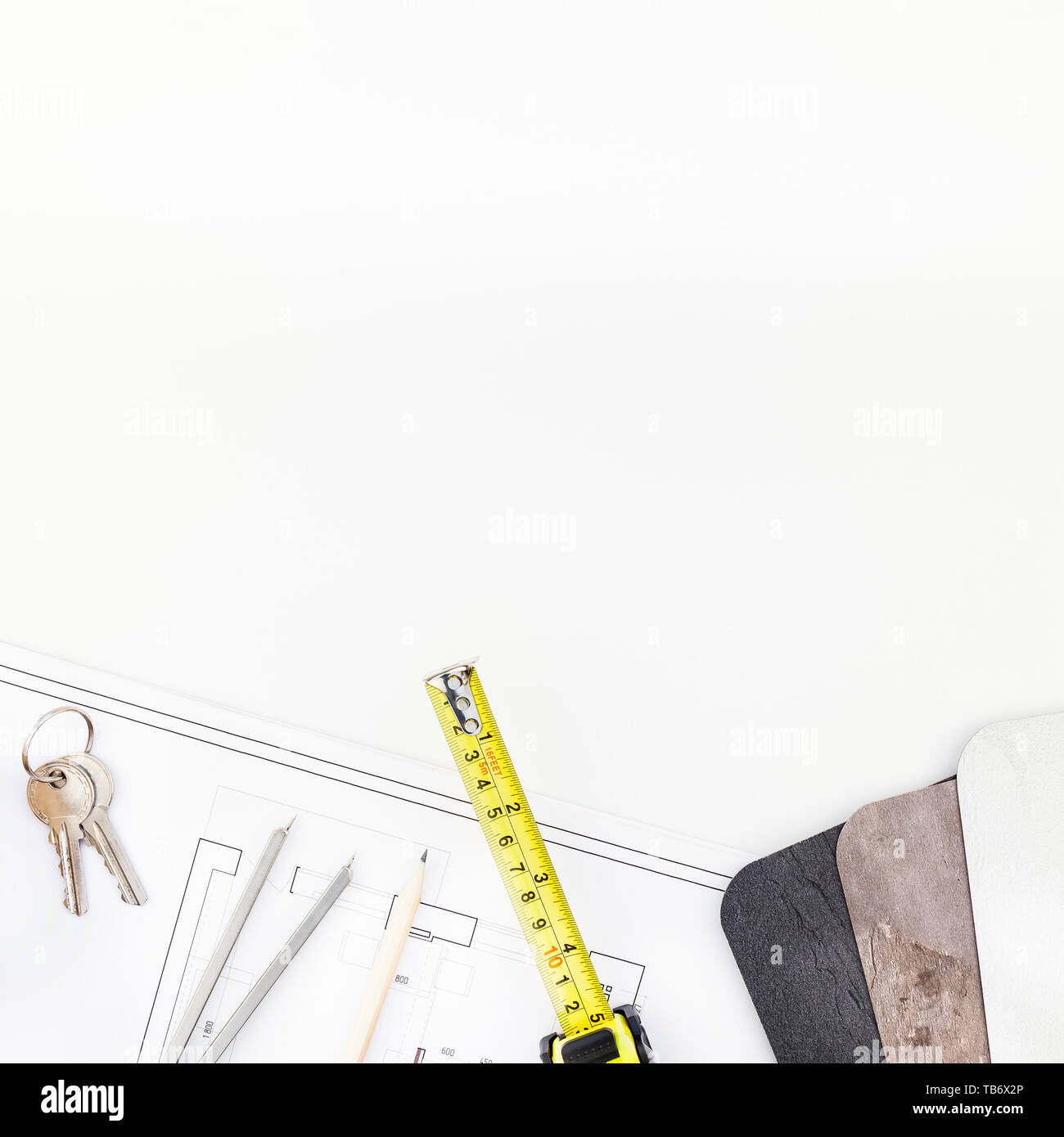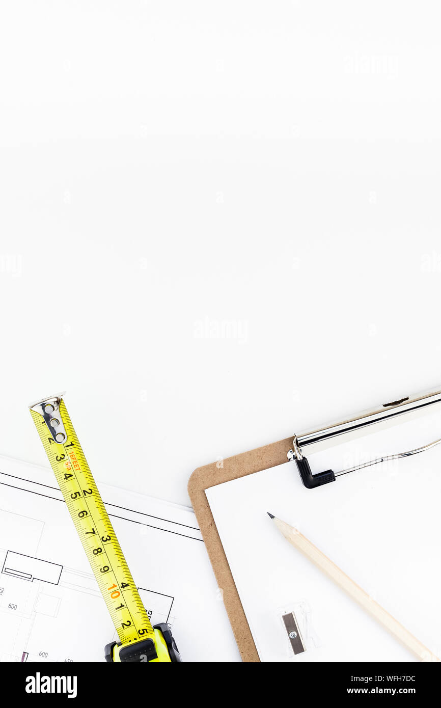 Creative Flat Lay Overhead Top View Blueprint Flat Project Plan