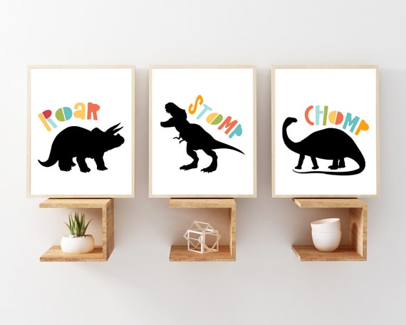 Dinosaur Wall Art Roar Stomp Chomp Dinosaur Room Decor Etsy