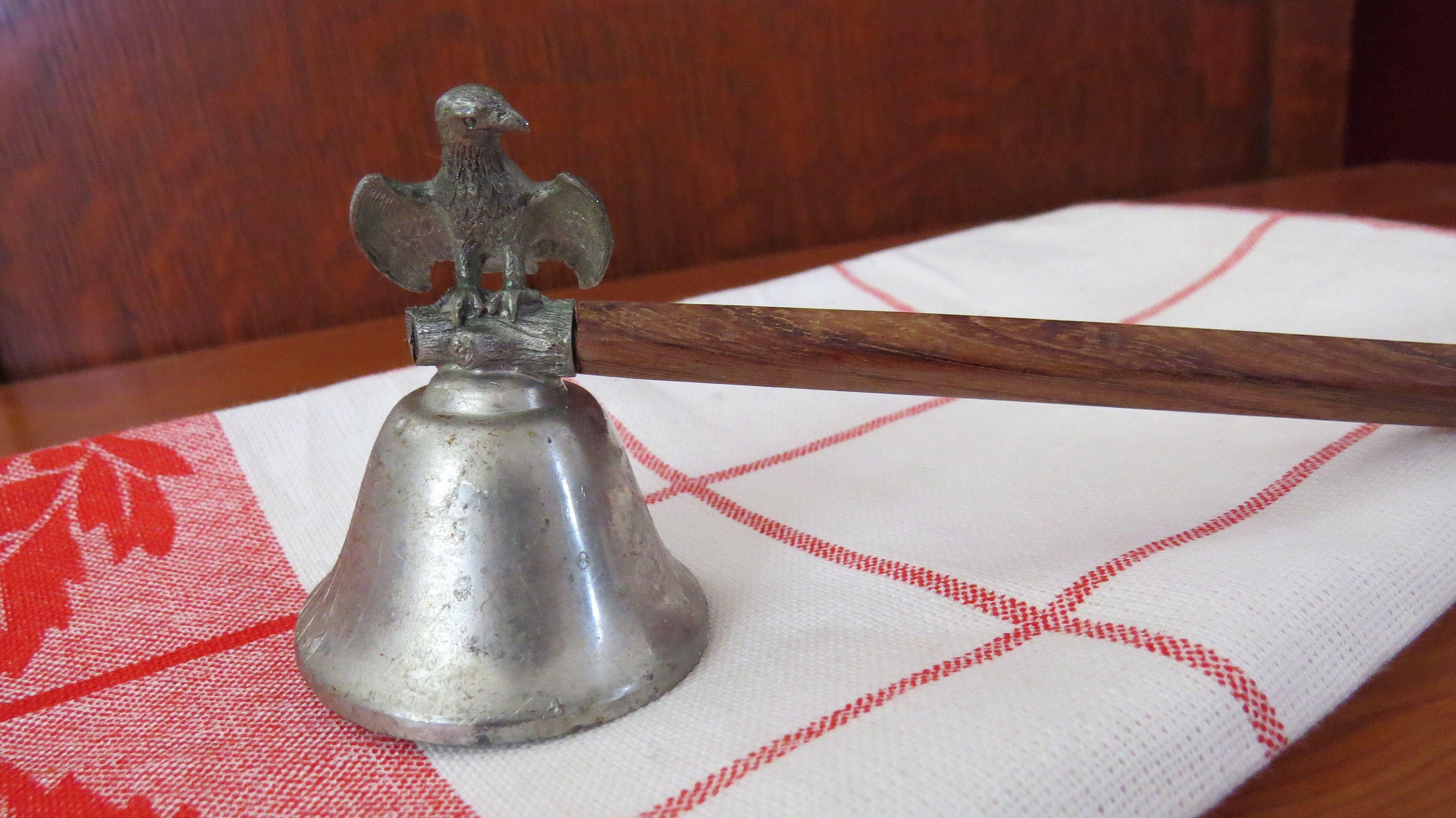 Pewter Silver Eagle Bell Candle Snuffer Wood Handle Americana