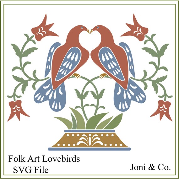 Folk Art Lovebirds Svg Primitive Early American Decor Etsy