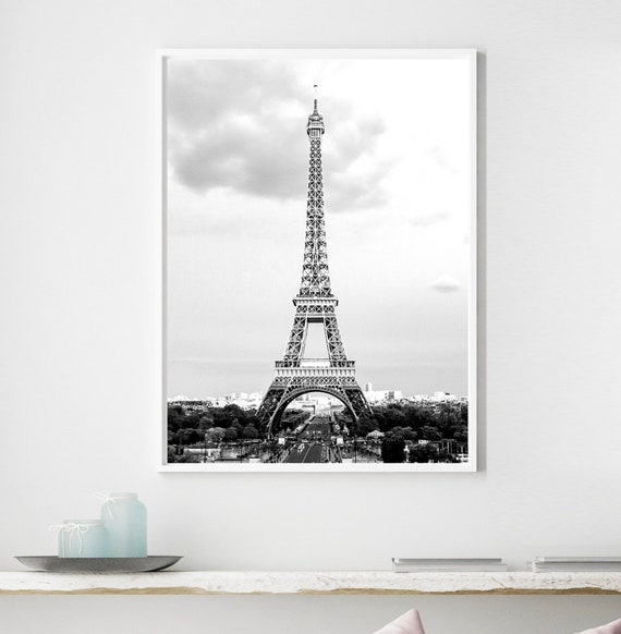 Eiffel Tower Print Black And White Paris Poster City Wall Etsy