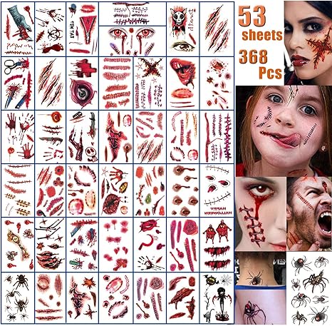 Amazon Com Halloween Face Fake Scar Tattoos 53 Sheets Zombie
