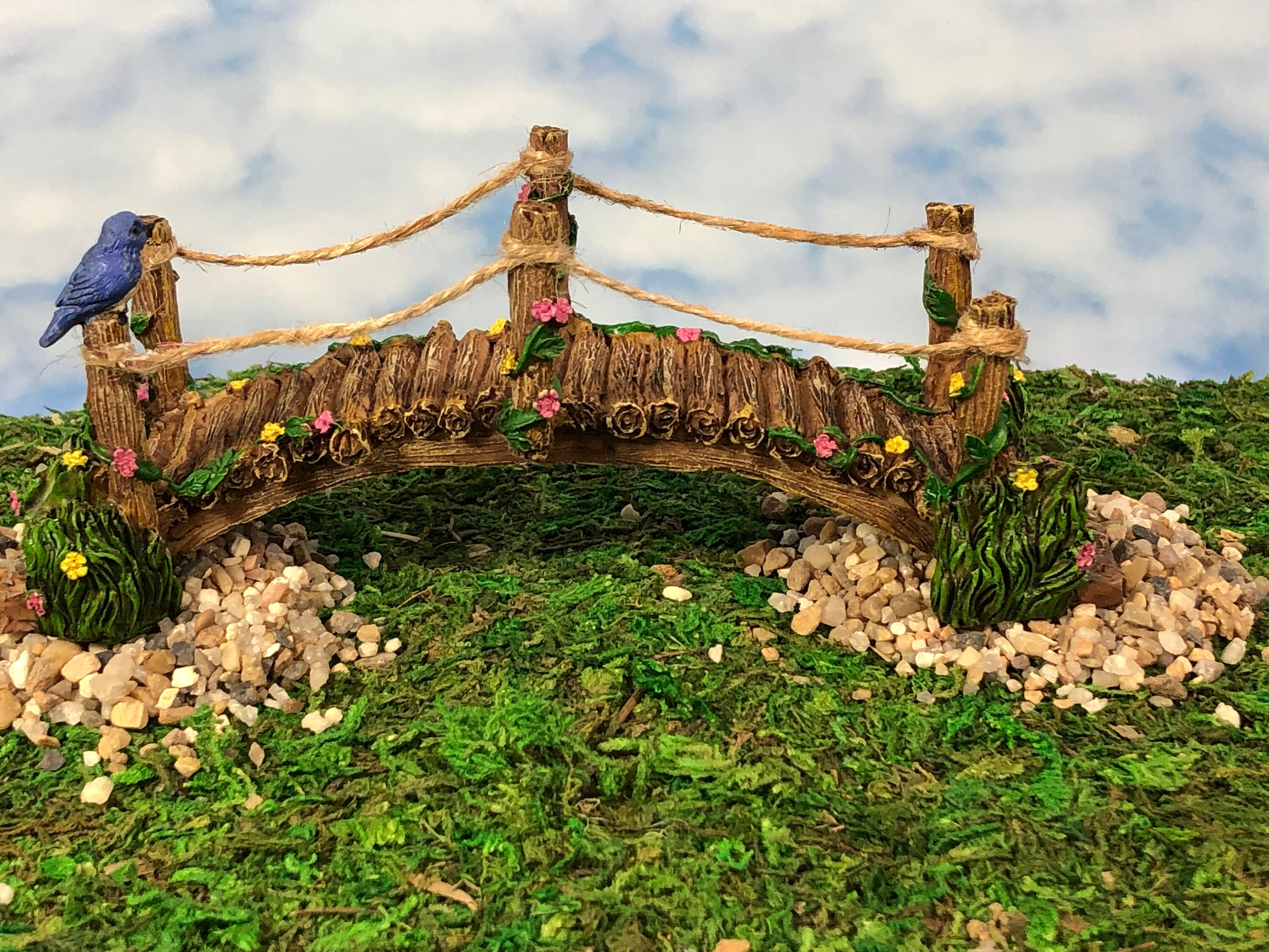 Blue Bird And Flower Bridge For Your Fairy Garden Garden Etsy