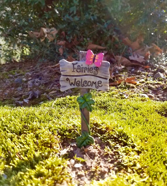 Fairies Welcome Sign Fairy Garden Decoration With Butterfly Etsy