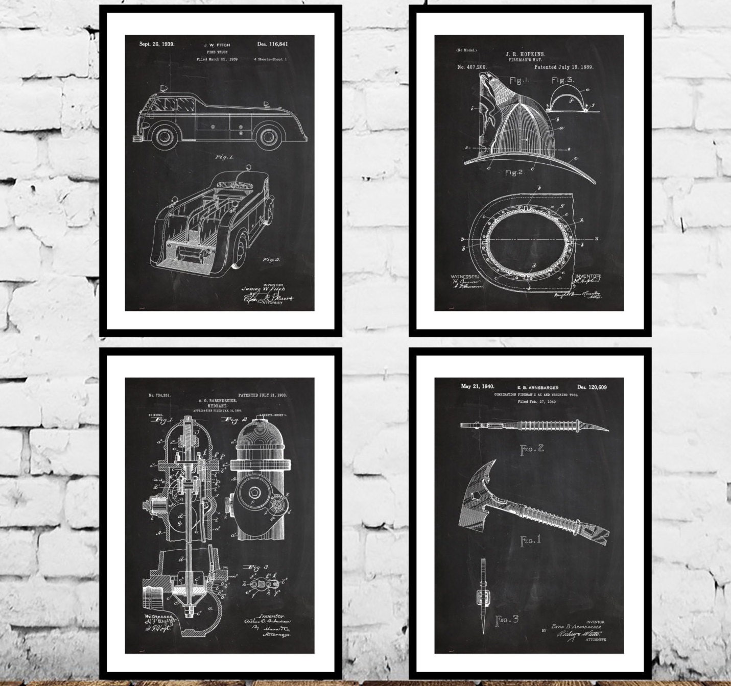 Firefighter Patent 4 Pack Firefighter Poster Firefighter Art Firefighter