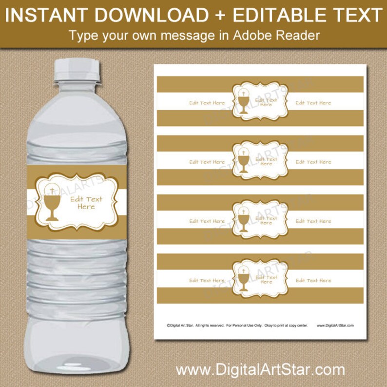 Gold First Communion Water Bottle Labels Template Boy First Etsy