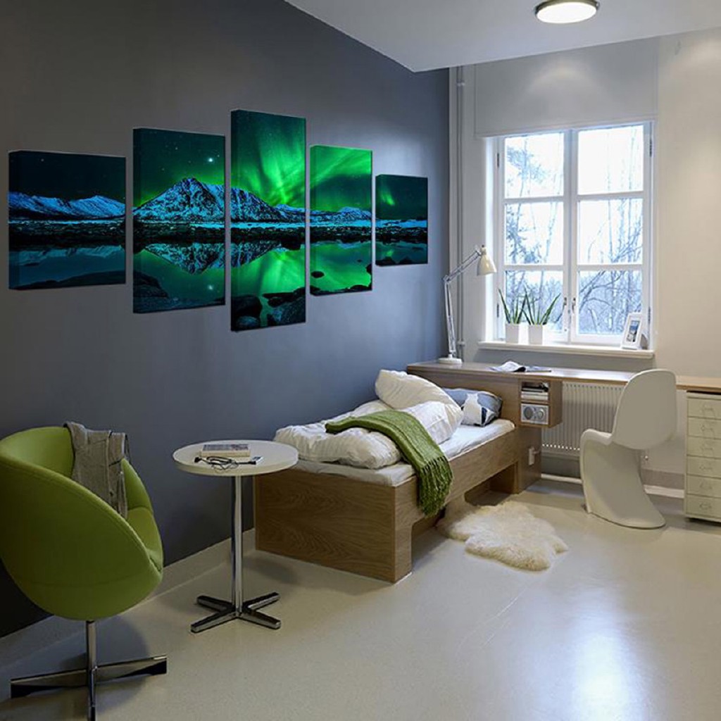 5 Panel Aurora Borealis Canvas Wall Art Printed Painting Home