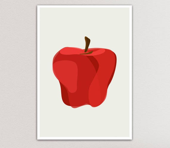 Red Apple Print Minimalist Fruit Art Print Fruit Kitchen Decor Etsy