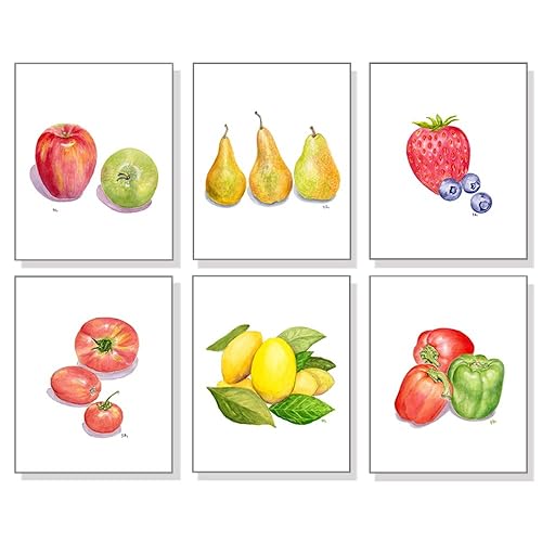 Amazon Com Fruit Art Vegetable Prints Set Of 6 Kitchen Wall Art