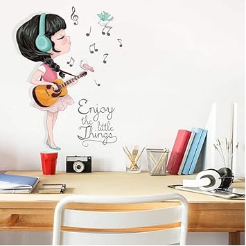 Amazon Com Wangxj Beautiful Guitar Girl Music Sticker 3d Kids