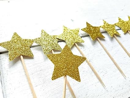 Amazon Com Guzon Set Of 36pcs Gold Glitter Stars Cake Toppers