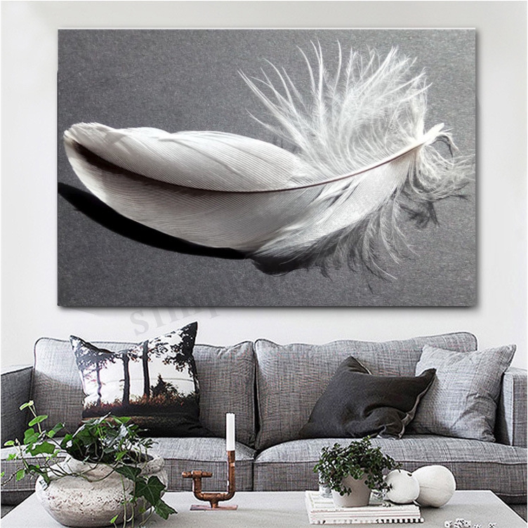 2 Sizes Nature Grey White Feather Canvas Abstract Wall Decor
