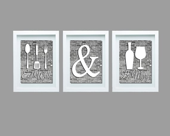 Gray And White Kitchen Wall Art Eat Well And Be Merry Print Etsy