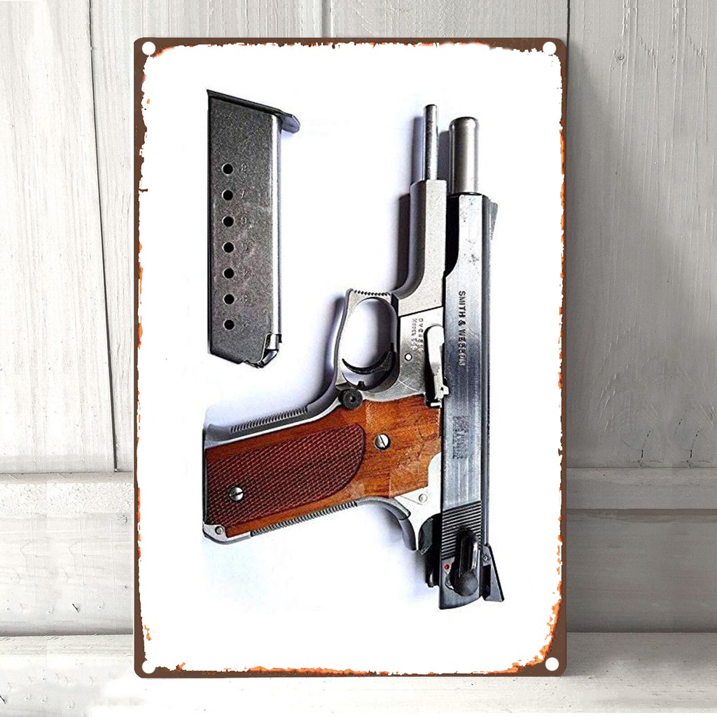 Smith Wesson 745 Pistol Gun Retro Vintage Decor Metal Tin Sign