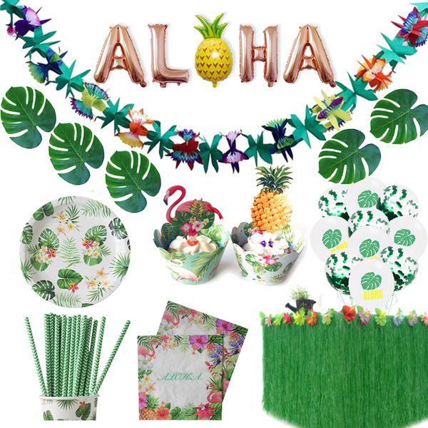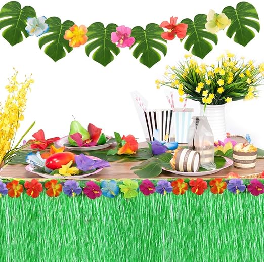 Hawaiian Party Decorations Artificial Flowers Palm Leaves Bunting