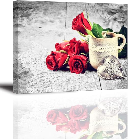 Amazon Com Red Rose Flowers Canvas Wall Art White Coffee Cup