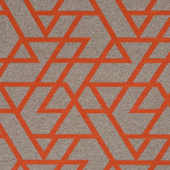 Orange Geometric Upholstery Fabric Taupe Home Decor Fabrics Etsy