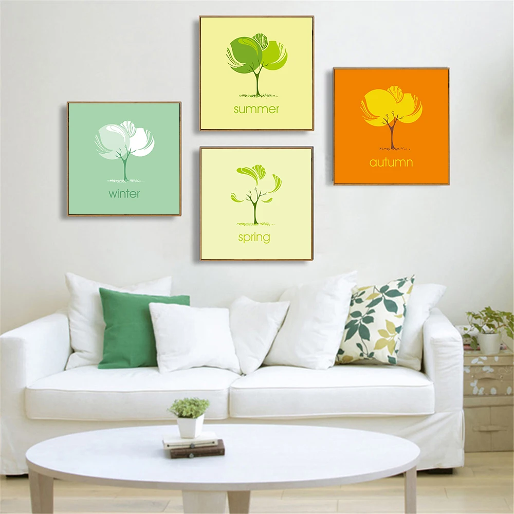 Tree Canvas Painting For Living Room Decoration Winter Autumn