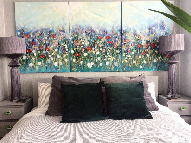 Floral Art Summer Meadow Painting Blue Home Decor Art Etsy