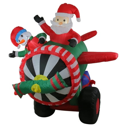 6 5 Inflatable Animated Santa And Snowman In Airplane Christmas