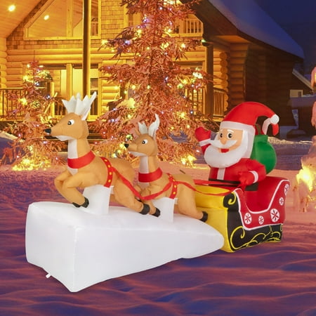 Kinbor 7ft Christmas Inflatable Santa Claus On Sleigh With Two
