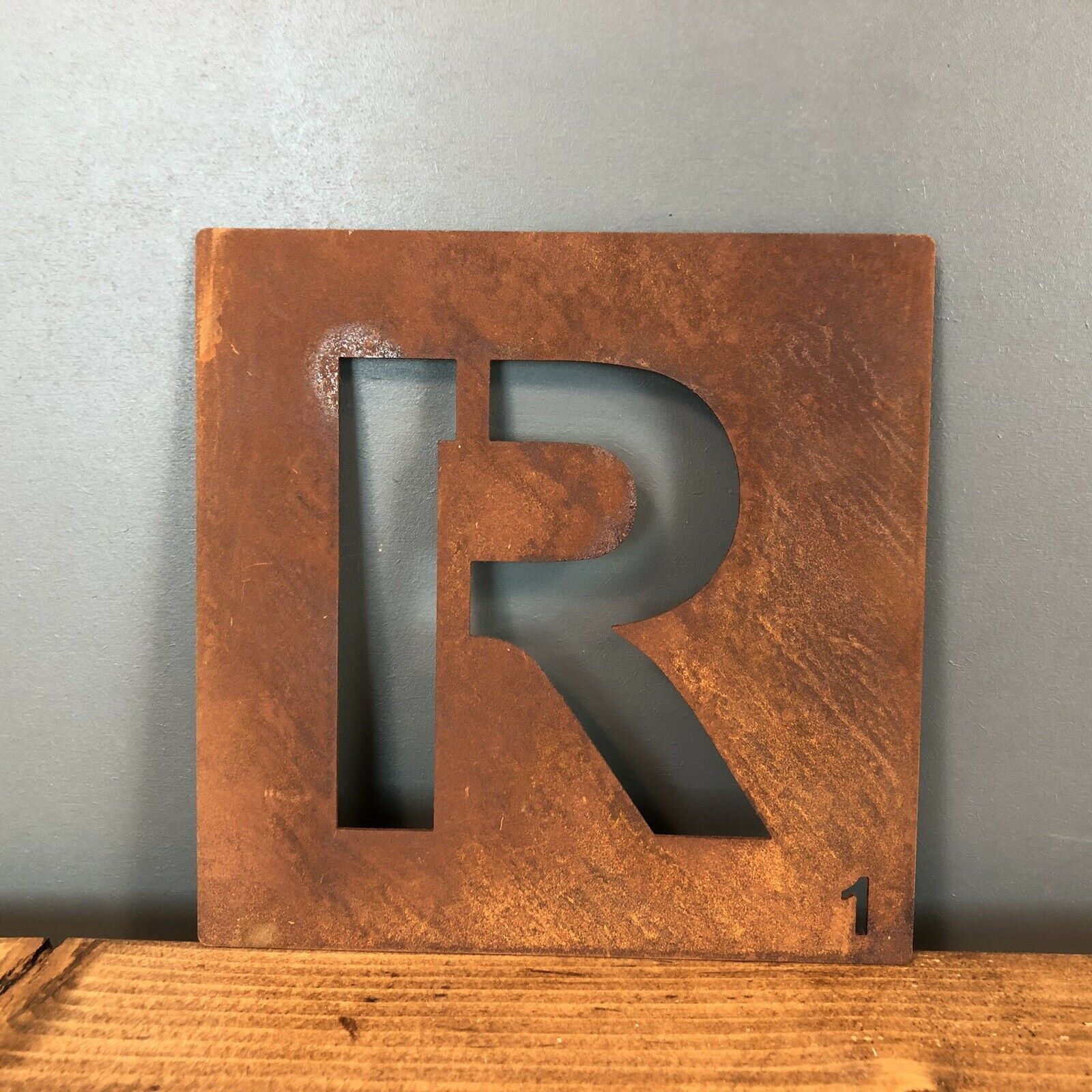 Rusty Metal Scrabble Letter Tile Wall Decor Art Lettering