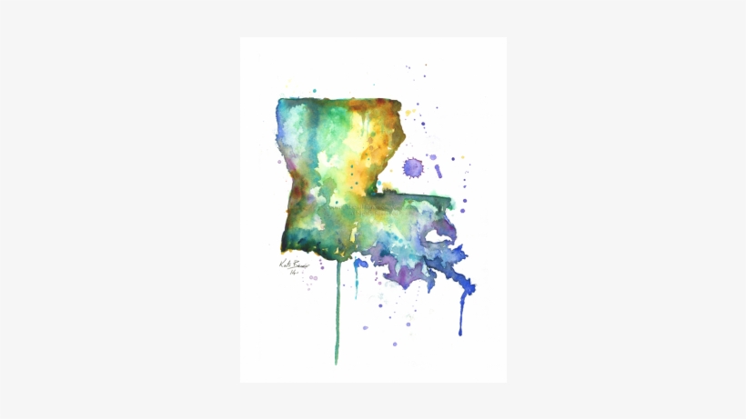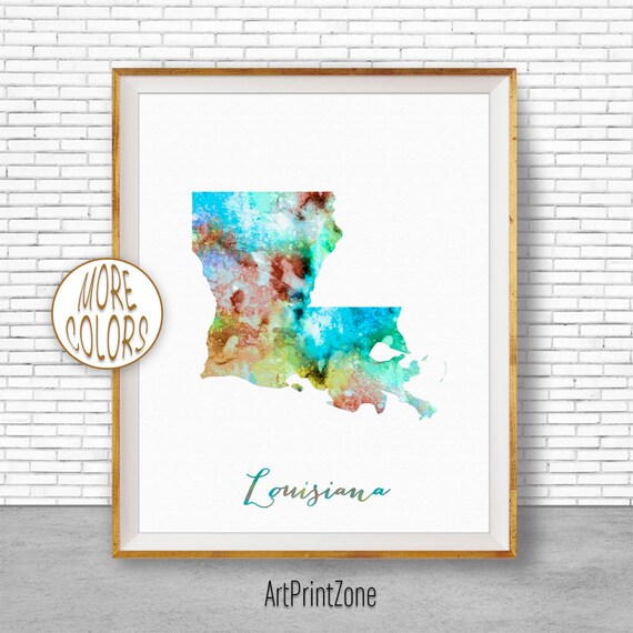 Louisiana Map Watercolor Map Decor Print Of Watercolor
