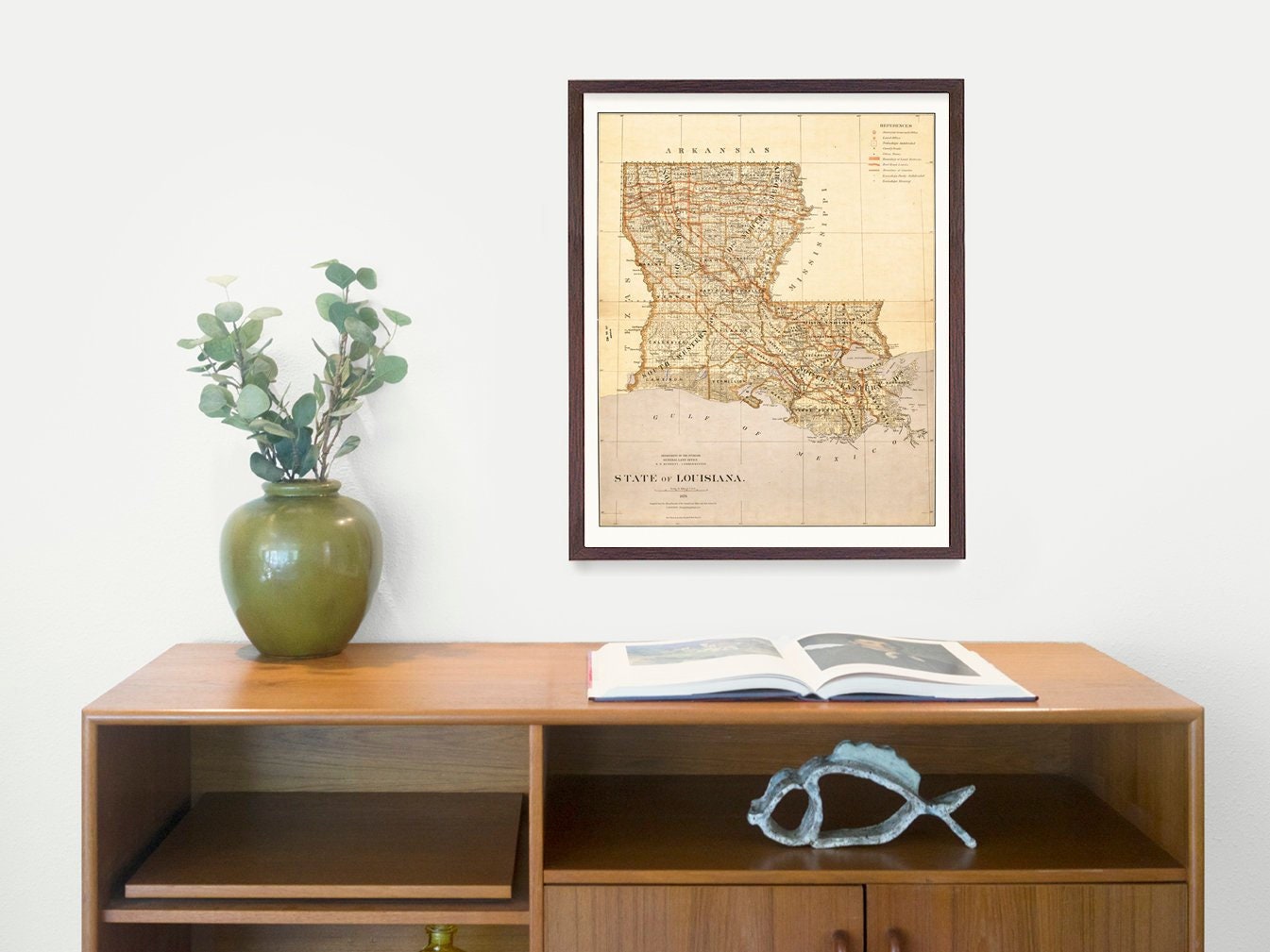 Louisiana Map Louisiana Map Art Map Decor New Orleans Map