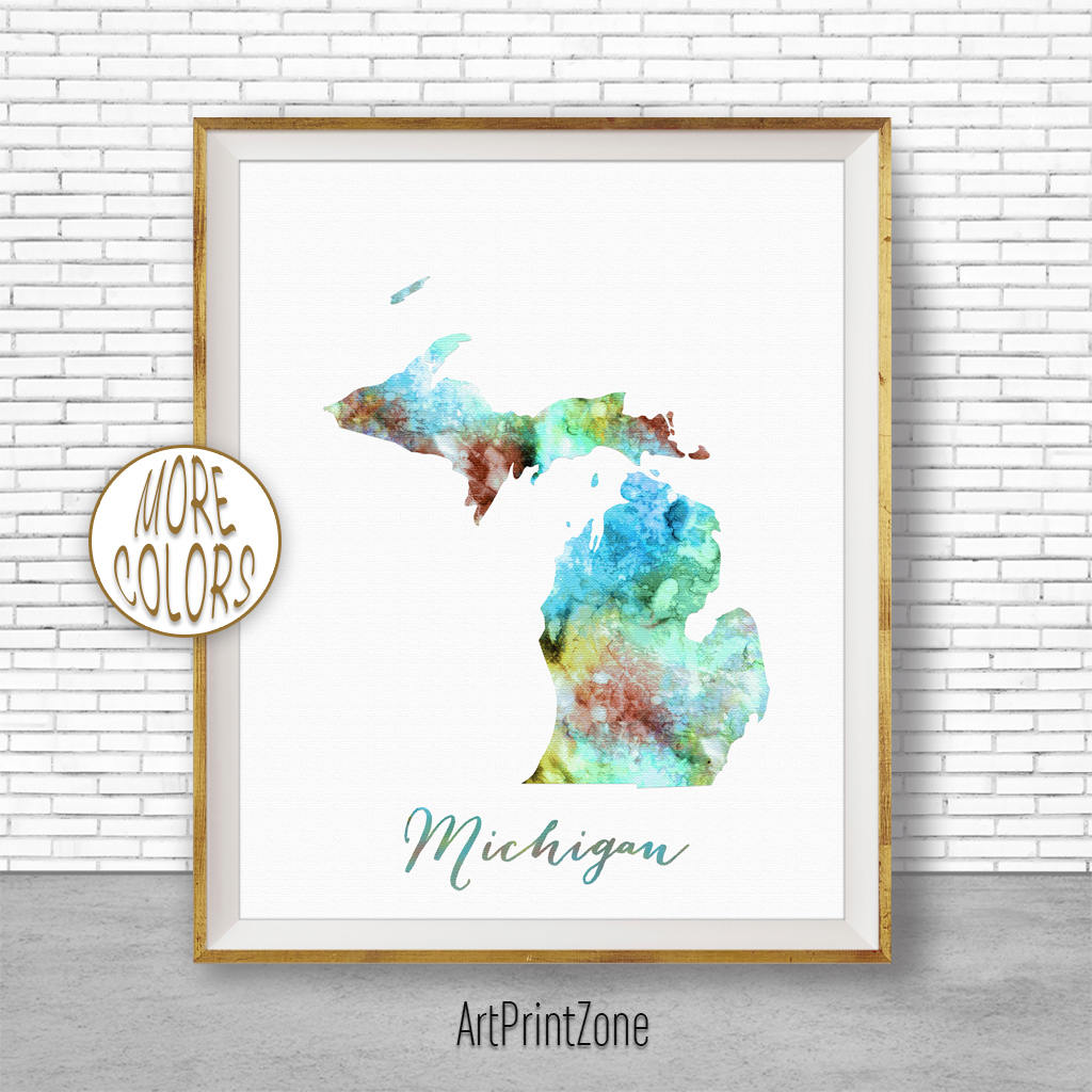Michigan State Michigan Decor Michigan Print Michigan Map Art Map