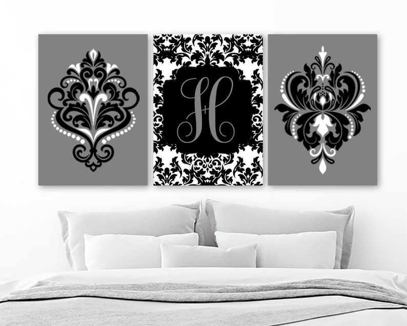 Gray Black Wall Art Damask Monogram Decor Family Monogram Etsy