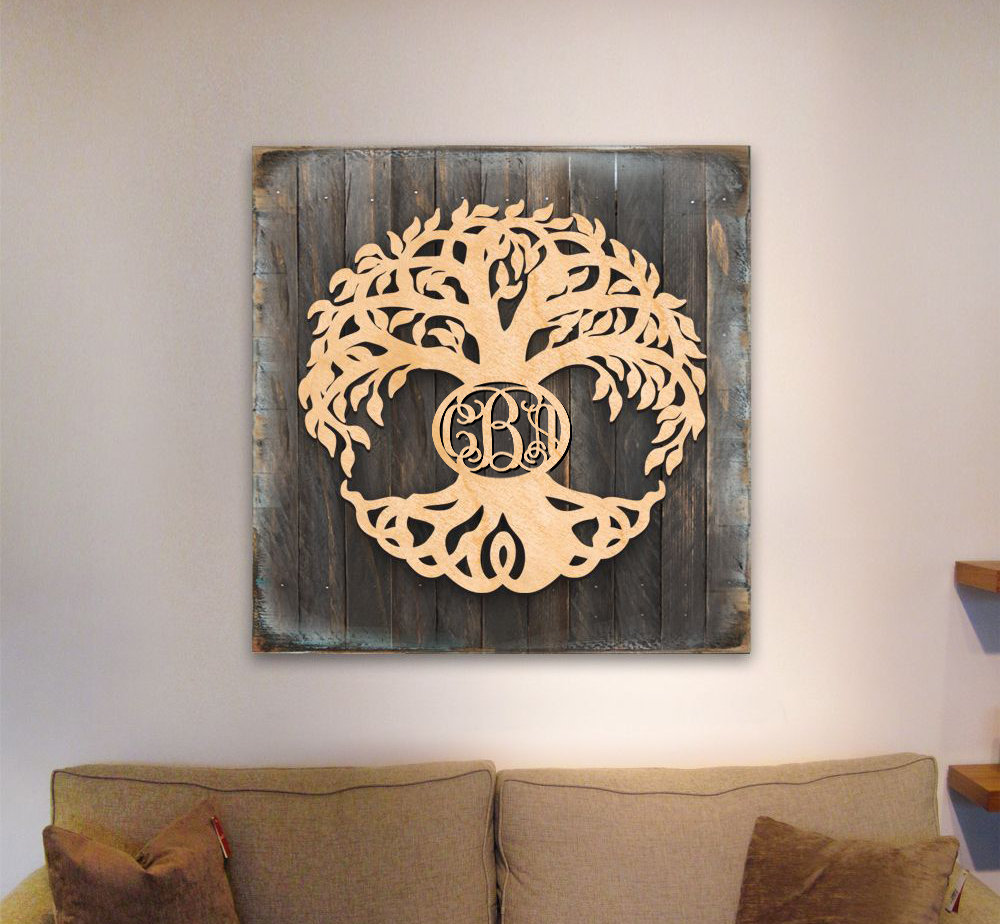 Winston Porter Tree Of Life With Monogram On Wooden Block Wall