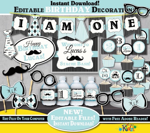 Self Editing Little Man Birthday Party Decorations Mustache Etsy