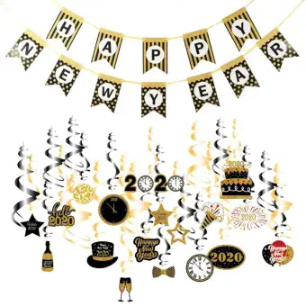 Weigao 30pcs Black Gold Hanging Swirls 2020 Happy New Year Party