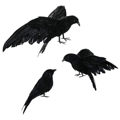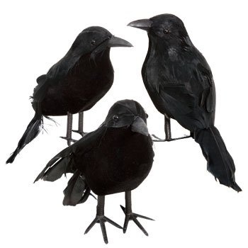 Halloween Black Crow 3 Pack Realistic Handmade Feathered Crow