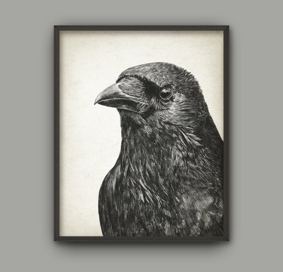 Raven Art Print Raven Pencil Drawing Print Raven Decor Etsy