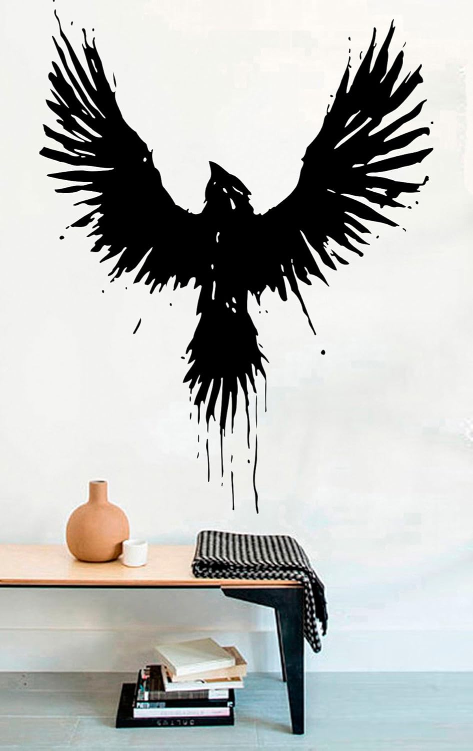 Big Black Raven Vinyl Wall Decals Bird Crow Stickers Murals Vinyl