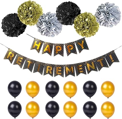 Retirement party supplies make the retirement event that much more fun for everyone. Free shipping on orders over 25 shipped by amazon. Happy retirement party decorations giant black and gold sign retirement party banner photo booth backdrop background for happy retirement party supplies white 48 out of 5 stars 157.
